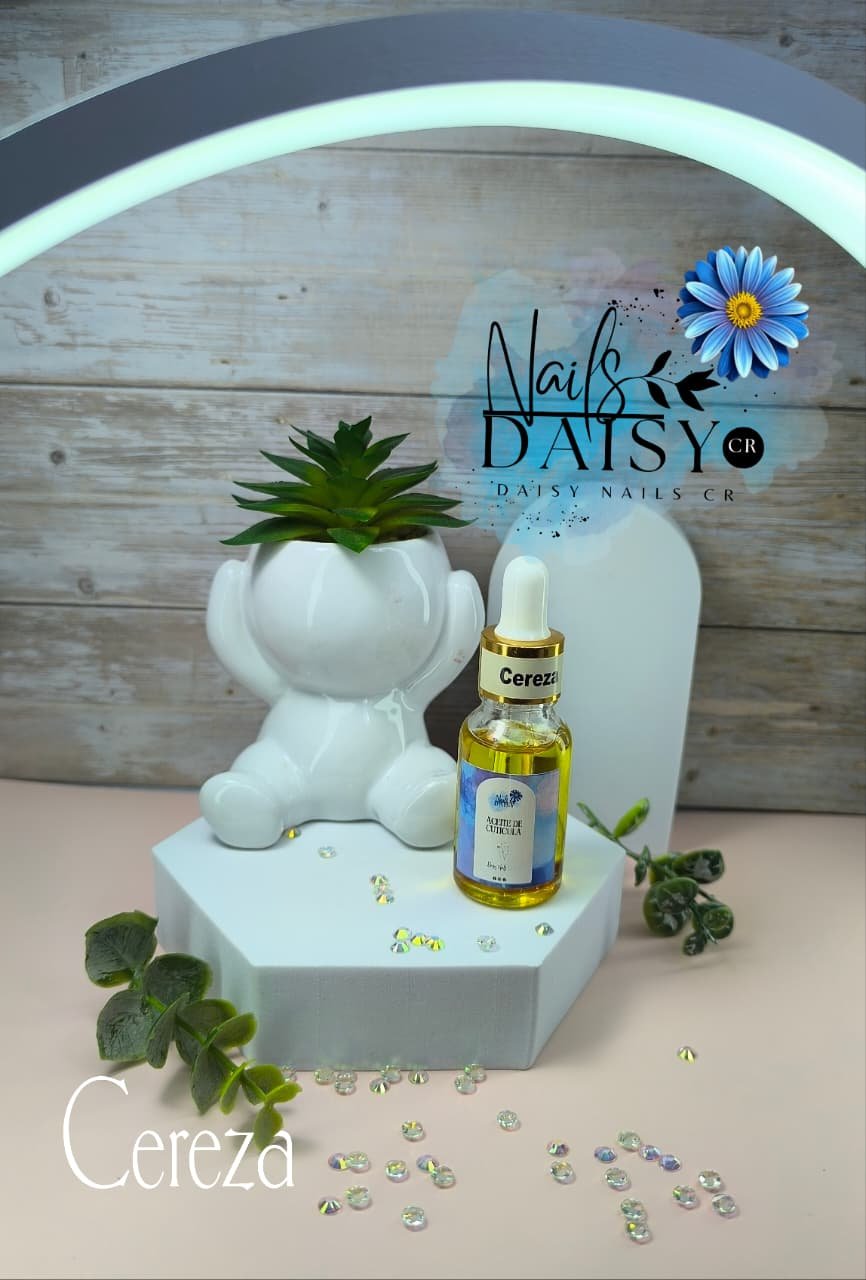 Aceite de cutícula Daisy Nails con aroma a Cereza, diseñado para proporcionar una sensación de frescura inmediata y una hidratación profunda tras servicios de pedicura. Su fórmula profesional con extractos naturales ayuda a suavizar las cutículas y revitalizar la piel, ofreciendo propiedades refrescantes que elevan la experiencia del tratamiento. Es el complemento ideal para cerrar servicios técnicos con un acabado saludable y un aroma relajante que distingue a nuestra marca costarricense.