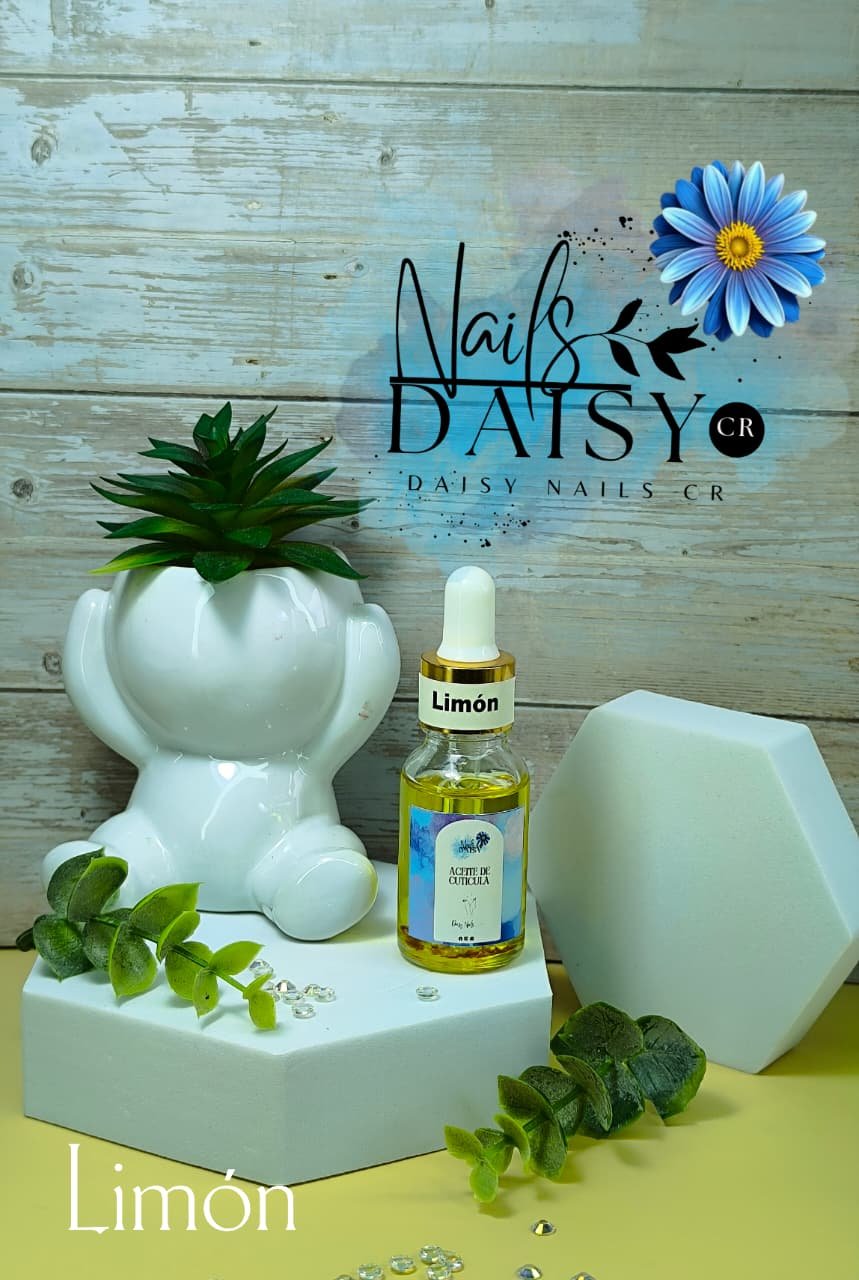 Aceite de cutícula Daisy Nails con aroma a Limón, formulado específicamente para brindar una hidratación profunda y revitalizante tras servicios de pedicura y manicura. Este producto de nuestra marca propia combina aceites esenciales que nutren la piel y suavizan la cutícula, dejando un acabado saludable y un brillo natural en la uña. Su refrescante fragancia cítrica eleva la experiencia sensorial en el spa o salón, mientras que su fórmula de rápida absorción garantiza un cierre de servicio profesional sin dejar una sensación grasosa, manteniendo los altos estándares de calidad costarricense de Daisy Nails CR.