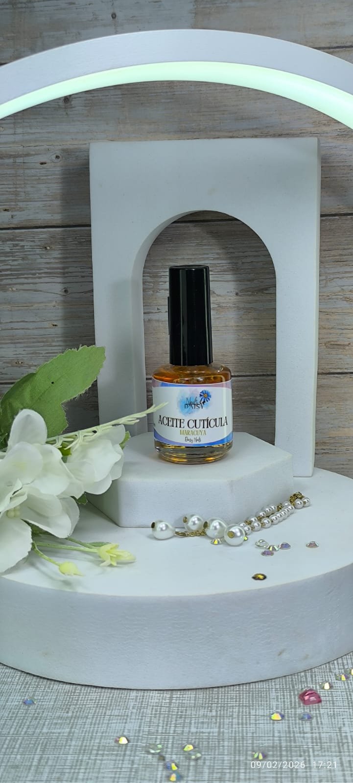 Aceite de cutícula Daisy Nails con aroma a Maracuya, formulado específicamente para hidratar, nutrir y revitalizar la piel después de cualquier servicio de manicura. Este producto de nuestra marca propia es el cierre perfecto para el ritual de cuidado, proporcionando una absorción rápida que no deja residuos grasos y un aroma refrescante que mejora la experiencia de la cliente. Su uso continuo promueve un crecimiento saludable de la uña natural y mantiene las cutículas suaves, reflejando el compromiso de Daisy Nails CR con la salud y el acabado profesional.