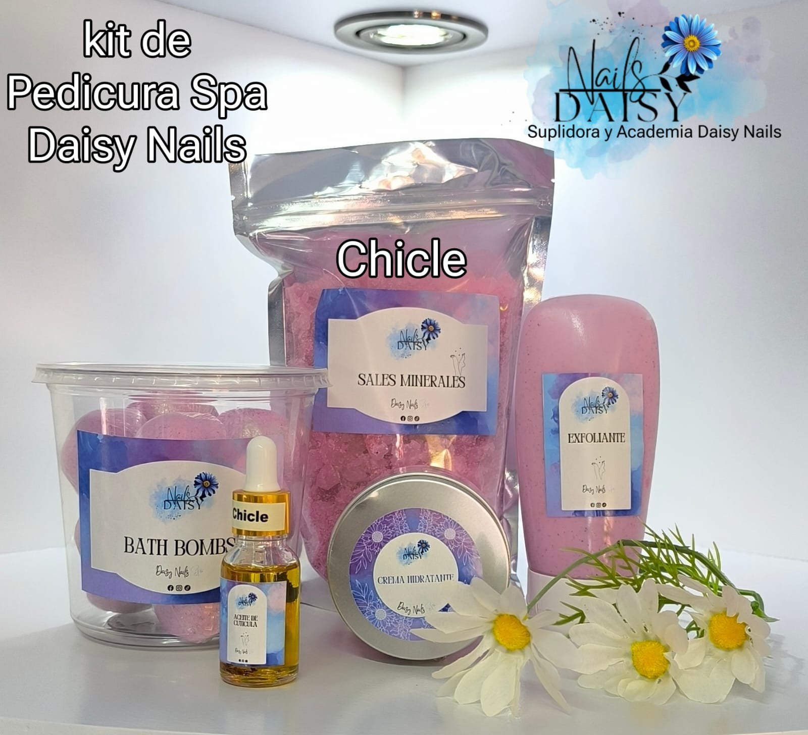 El Kit de Pedicura Daisy Nails en aroma a Chicle es un sistema integral de 5 pasos diseñado para ofrecer un tratamiento de spa profundo y revitalizante. Este protocolo profesional combina las propiedades antioxidantes y refrescantes de los cítricos para transformar la salud de los pies, desde la limpieza inicial hasta el sellado final. Cada componente ha sido formulado para trabajar en sinergia, eliminando impurezas, suavizando texturas y proporcionando una hidratación intensiva que restaura la vitalidad de la piel. Es la herramienta definitiva para elevar el estándar de los servicios de pedicura en cabina con la calidad y el respaldo de nuestra marca costarricense.