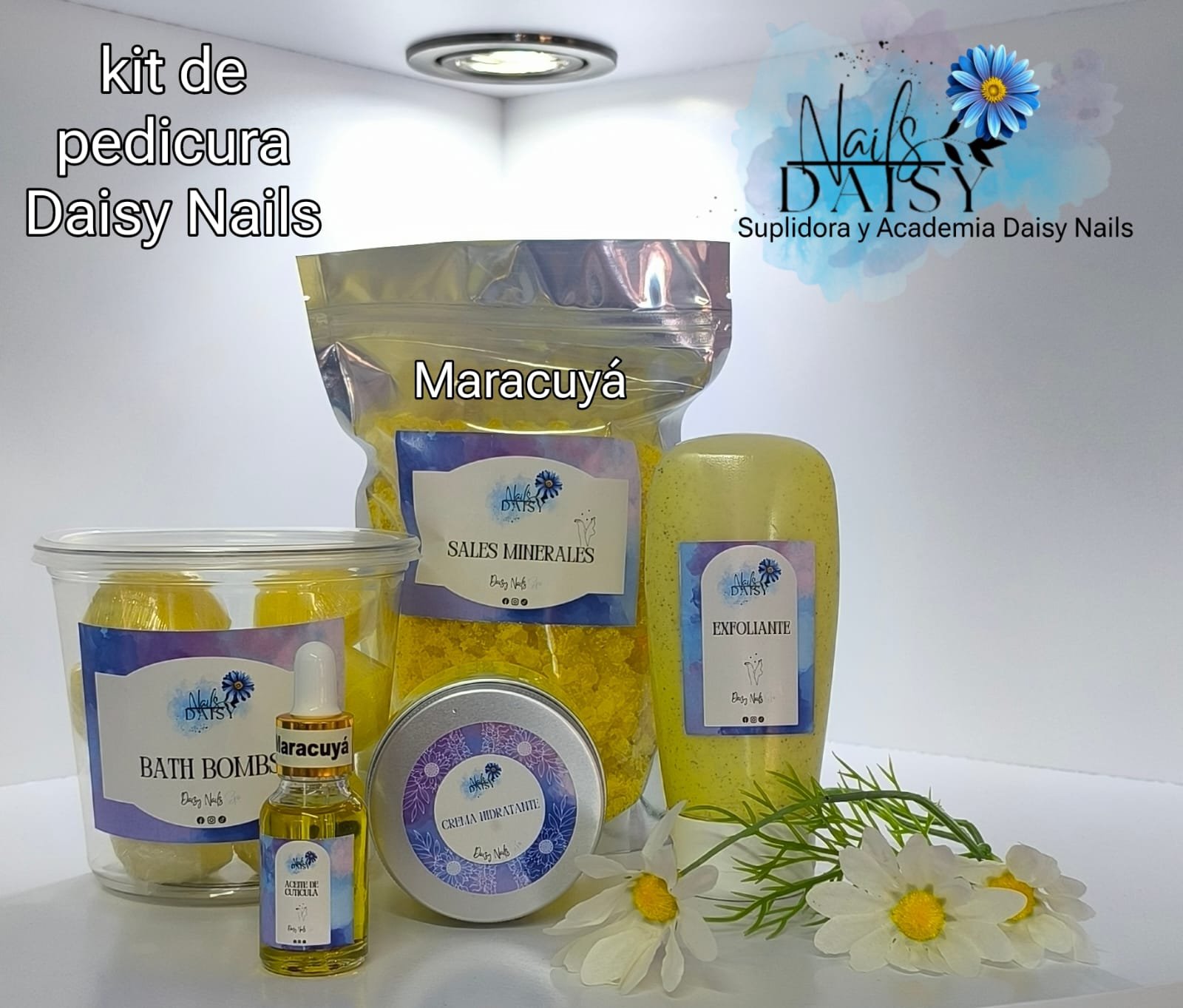 El Kit de Pedicura Daisy Nails en aroma a Maracuya es un sistema integral de 5 pasos diseñado para ofrecer un tratamiento de spa profundo y revitalizante. Este protocolo profesional combina las propiedades antioxidantes y refrescantes de los cítricos para transformar la salud de los pies, desde la limpieza inicial hasta el sellado final. Cada componente ha sido formulado para trabajar en sinergia, eliminando impurezas, suavizando texturas y proporcionando una hidratación intensiva que restaura la vitalidad de la piel. Es la herramienta definitiva para elevar el estándar de los servicios de pedicura en cabina con la calidad y el respaldo de nuestra marca costarricense.